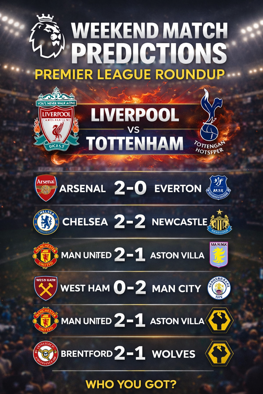 This is the headline game. Liverpool host Tottenham on Sunday, and honestly, if this ends 0-0, the football universe owes everyone an apology.